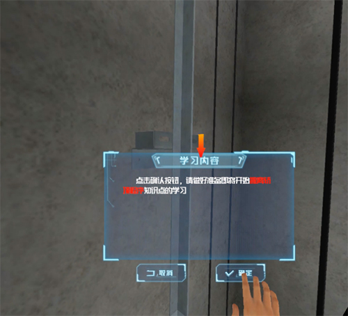 完成一個(gè)單元的學(xué)習(xí)后,可以在場(chǎng)景中找到對(duì)應(yīng)的出口,返回菜單進(jìn)行下一階段的學(xué)習(xí)。也可以在左手輪盤(pán)中選擇"選項(xiàng)"后直接退出系統(tǒng)。