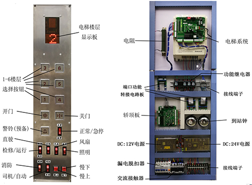 教學(xué)電梯的電氣控制系統(tǒng)是采用PLC和交流變頻調(diào)速控制,其硬件結(jié)構(gòu)的組成及功能與實(shí)際電梯完全一樣,具有自動平層、自動開關(guān)門、順向響應(yīng)轎內(nèi)外呼梯信號、直駛、電梯安全運(yùn)行保護(hù)等功能,以及電梯停用、急停、檢修、慢上、慢下、照明和風(fēng)扇等特殊功能。