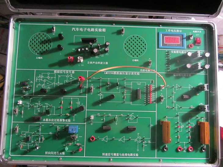 汽車電子電路實(shí)驗(yàn)箱結(jié)合汽車電學(xué)的典型基本電路,由淺到深地設(shè)計(jì)了二極管和三極管基本實(shí)驗(yàn)、線性集成穩(wěn)壓電源實(shí)驗(yàn)、噴油器驅(qū)動(dòng)實(shí)驗(yàn)、轉(zhuǎn)速信號(hào)測量與處理實(shí)驗(yàn)、水箱水位過低報(bào)警實(shí)驗(yàn)、轉(zhuǎn)向閃光器實(shí)驗(yàn)等六個(gè)實(shí)驗(yàn)項(xiàng)目,提供了一個(gè)給學(xué)生提高動(dòng)手能力,深入理解汽車電學(xué)基礎(chǔ)知識(shí)的實(shí)驗(yàn)平臺(tái)。
