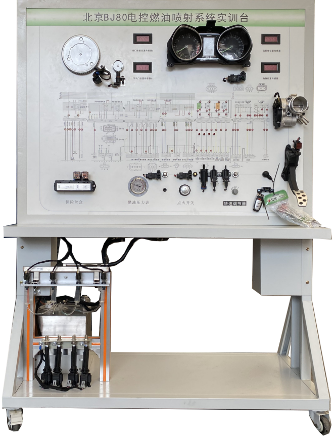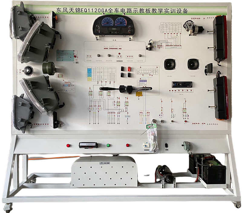 汽車示教板,汽車燈光儀表示教板,汽車電器教板適用于各類院校汽車專業(yè)學(xué)員實(shí)操技能的培訓(xùn)考核,汽車教學(xué)示教板用真實(shí)的汽車零部件,充分展示車門控制系統(tǒng)組成結(jié)構(gòu),電動窗控制系統(tǒng)、電動后視鏡系統(tǒng)、中控門鎖系統(tǒng)、防盜系統(tǒng)等,可對系統(tǒng)進(jìn)行結(jié)構(gòu)和控制系統(tǒng)的認(rèn)識實(shí)訓(xùn),汽車示教板上繪有完整的車門控制系統(tǒng)電路圖,可直觀學(xué)習(xí)系統(tǒng)的工作原理,汽車示教板上安裝有與部件一一對應(yīng)的檢測端子,可使用檢測儀器實(shí)時(shí)檢測工況,測量出電壓、阻值、電流、頻率等信號參數(shù)。