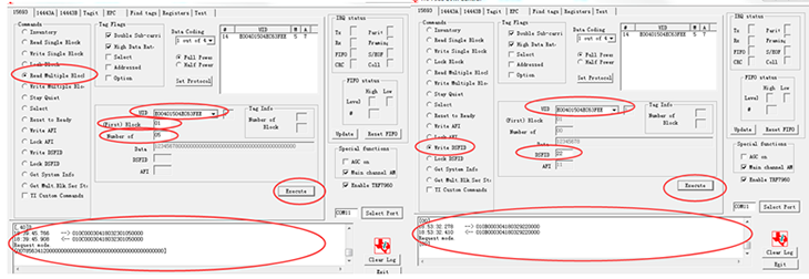 尋找單張、多張標(biāo)簽及標(biāo)簽總量 讀寫單個(gè)塊操作 鎖定標(biāo)簽塊操作 讀寫多個(gè)塊數(shù)據(jù) 設(shè)置標(biāo)簽進(jìn)入靜默狀態(tài) 設(shè)置標(biāo)簽處于被選擇狀態(tài) 復(fù)位標(biāo)簽進(jìn)入準(zhǔn)備狀態(tài) 向標(biāo)簽寫應(yīng)用標(biāo)志位 鎖定應(yīng)用標(biāo)志位 寫數(shù)據(jù)存儲(chǔ)格式標(biāo)志位 鎖定數(shù)據(jù)存儲(chǔ)格式ID標(biāo)志位 獲取標(biāo)簽信息 獲取多個(gè)塊安全狀態(tài) |