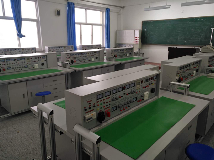 1、實驗操作桌:12張,一桌二座,操作桌桌面中央設置九孔通用繼電控制實訓插板(尺寸:45×70cm),繼電控制實訓根據(jù)電路要求插上電氣元件,布線實驗。元器件已裝在特制元件盒上,實驗時插在通用底板上就能連續(xù)實訓,方便、靈活。每張操作桌配有一塊膠皮板,保護插板和桌面(如需要在桌上放置電動機、焊接、放重物等)。