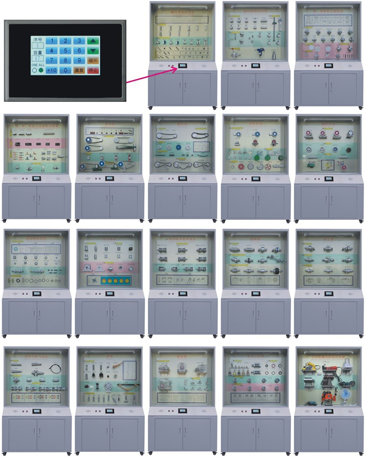 機(jī)械設(shè)計零件陳列柜,是根據(jù)機(jī)械設(shè)計(零件)課程基本要求設(shè)計制造的實驗設(shè)備。陳列柜通過機(jī)械零件模型或?qū)嵨铮浜舷鄳?yīng)的圖文資料,形象地展示與解說機(jī)械設(shè)計的基本知識,加強(qiáng)學(xué)生對通用機(jī)械零件的類型、結(jié)構(gòu)特點及其設(shè)計的感性認(rèn)知,為進(jìn)一步學(xué)習(xí)機(jī)械設(shè)計奠定基礎(chǔ)。