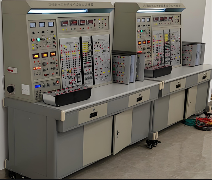 高性能電工電子技術(shù)綜合實訓(xùn)設(shè)備、高性能電工技術(shù)實驗裝置、電工電子實驗裝置、電工電子實驗裝置、電氣控制線路連接電工試驗臺、電工電子及電力拖動綜合應(yīng)用創(chuàng)新實訓(xùn)裝置、電工電子技術(shù)實訓(xùn)室設(shè)備主要承擔(dān)機(jī)電一體化技術(shù)、電氣自動化技術(shù)、工業(yè)過程自動化技術(shù)和電力系統(tǒng)自動化技術(shù)等電類相關(guān)專業(yè)的《電氣控制線路的安裝與維修》、《電工基礎(chǔ)》、《電力電子技術(shù)》、《模擬電子技術(shù)》、《數(shù)字電子技術(shù)》等課程的實訓(xùn)教學(xué)任務(wù)及綜合實訓(xùn)項目,并為教師提供了自動控制方向的科研開發(fā)平臺。核心為電氣控制線路的安裝與檢修、數(shù)模電、電工基礎(chǔ)模塊等。配有綜合教學(xué)一體機(jī),可實現(xiàn)理實一體化項目教學(xué)。通過電工技術(shù)實驗實訓(xùn),能夠鍛煉學(xué)生對電工元件的識別、檢測和整體電路的安裝、調(diào)試與檢修等各項技能,同時能提高學(xué)生電工技術(shù)的理論綜合能力。電工技術(shù)實訓(xùn)室是啟發(fā)認(rèn)識創(chuàng)新提高的實訓(xùn)室?梢赃M(jìn)行照明控制電路的實訓(xùn)、電力計量控制電路實訓(xùn)、電力拖動控制電路的實訓(xùn)、電動機(jī)啟動控制電路實訓(xùn)、電動機(jī)正反轉(zhuǎn)控制和位置控制電路的實訓(xùn)、電動機(jī)順序控制和時序控制電路的實訓(xùn)、電動機(jī)拖動控制系統(tǒng)安裝和調(diào)試的實訓(xùn)、電力拖動控制電路及電動機(jī)制動控制電路的實訓(xùn)。為今后從事維修電工技術(shù)工作打下扎實基礎(chǔ)。