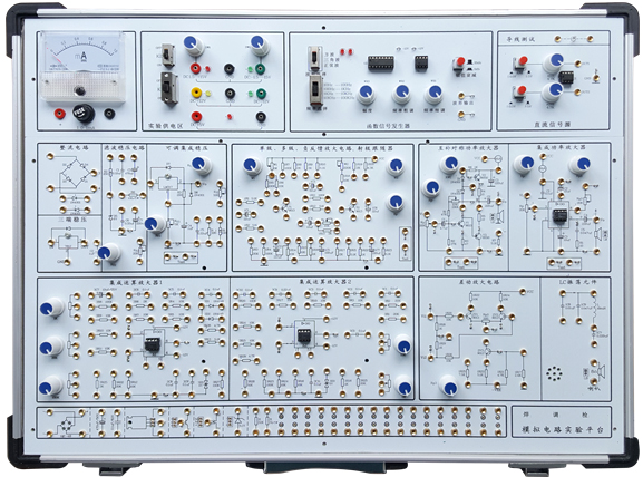 模擬電路實(shí)驗(yàn)箱由鋁木合金箱體、高性能線性電源、和實(shí)驗(yàn)電路板組成。其中實(shí)驗(yàn)電路采用固定功能模塊方式,電路原理和元器件符號(hào)清晰,實(shí)驗(yàn)用元器件可以焊裝在線路板的反面,安全可靠,不易損壞,也可以裝在線路板的正面,元件直觀可見(jiàn),感性認(rèn)識(shí)強(qiáng),正面還有實(shí)驗(yàn)電路原理圖,使學(xué)生在實(shí)驗(yàn)時(shí)對(duì)原理一目了然。