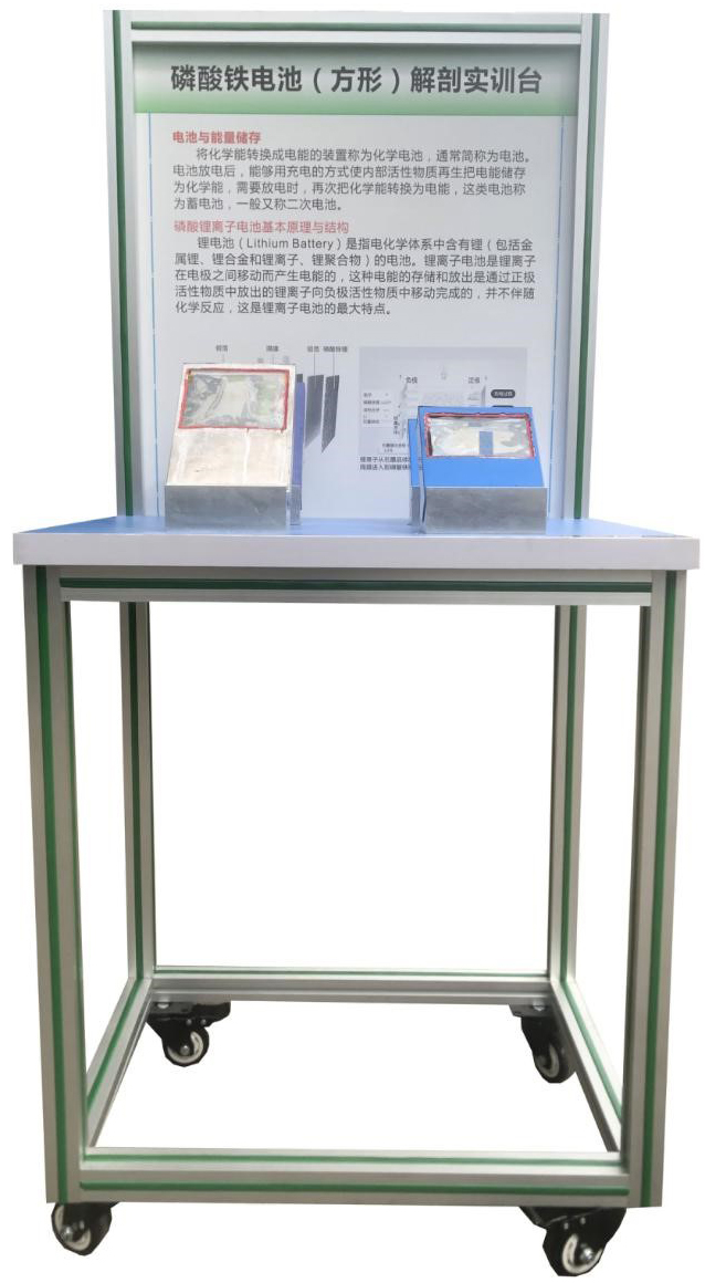 5.實訓臺配備解剖完整磷酸鐵鋰單體電池2件,真實展示磷酸鐵鋰電池內部結構。