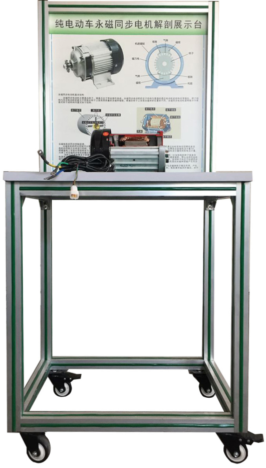 選用新能源電動車電機(60V2KW永磁同步電機),通過解剖,剖面噴涂不同顏色,總成內(nèi)部的機械結(jié)構(gòu)和相互之間的裝配關(guān)系清楚的顯現(xiàn)在外面。展示驅(qū)動電機內(nèi)部結(jié)構(gòu),可對照解剖物,了解驅(qū)動電機結(jié)構(gòu)與原理。