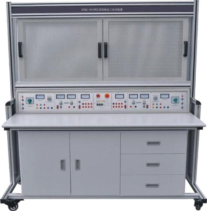 初級維修電工實訓室設備可作為維修電工考核裝置,有可在網(wǎng)孔板上進行照明器件及線路的安裝,電工儀表測量線路的安裝、電工儀表測量線路的安裝、配電盤的裝配訓練,電動機的控制線路安裝訓練。