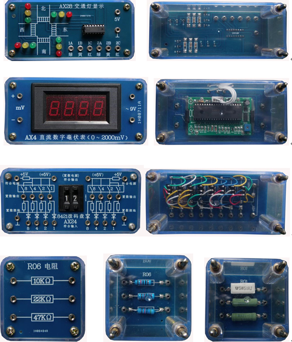 電工技能實訓通過安全用電、常用工具及儀表的使用、電工綜合技能訓練、電動機的安裝、維護與故障處理、電動機控制線路的安裝工藝、調(diào)試維修、常用生產(chǎn)機械電氣控制線路的安裝連線,故障分析與處理,基于PLC及變頻器的電機基本控制線路以及常用機床的控制,可達到勞動及社會保障職業(yè)技能鑒定中級以上水平。電子技能實訓改革傳統(tǒng)實驗室實訓教學模式,通過基本操作技能和三十幾類實用新型電路的制作、調(diào)試,使學生掌握電子產(chǎn)品制作調(diào)試,學會閱讀電路原理圖和PCB圖,熟悉電子元器件的選擇、測試,掌握焊接和電路組裝工藝技能(配備三十幾套特制實訓電路板和相應電路元器件),并能處理安裝調(diào)試過程中出現(xiàn)的問題。實訓電路中涵蓋開關、音頻、信號發(fā)生、計數(shù)、譯碼、顯示、測量、控制等實訓內(nèi)容。實訓臺上增加了電子創(chuàng)新透明模塊與九孔萬能電路插板,可開展電子創(chuàng)新項目實訓,實訓項目豐富。