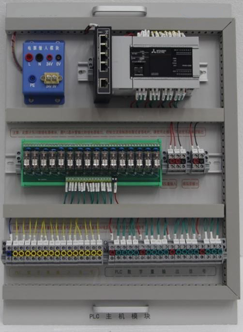 6)電源輸入模塊,強電、弱電采用不同型號連接柱分開插拔,便于插錯電源,引起PLC的損壞。配合電源控制屏的電源輸出,可實現(xiàn)自由通斷。
