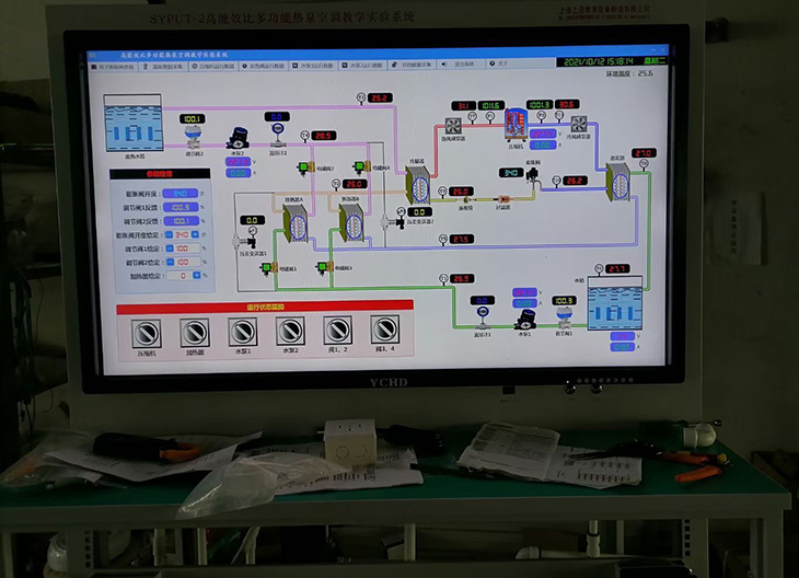 *14、50寸高精度觸摸屏一體機及控制開發(fā)軟件,可進行教學演示和實驗模式控制,并實時顯示系統(tǒng)溫度、壓力、差壓、流量、功率等數(shù)據(jù),計算系統(tǒng)能效比和制熱量等參數(shù)。